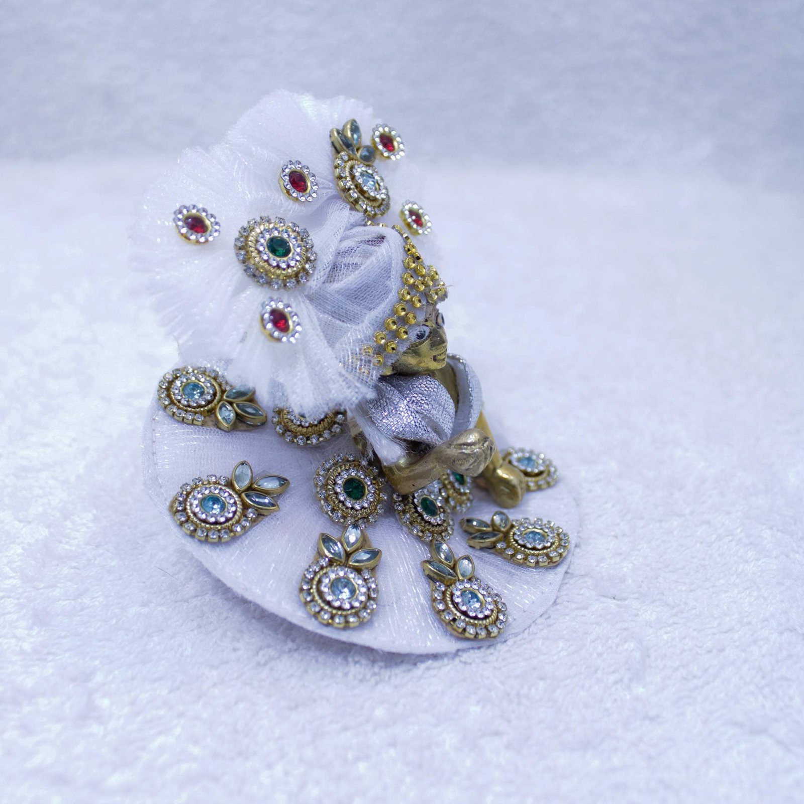 Handcrafted Laddu Gopal Idol with White Royal Designer Poshak (Pearl & Stone Edition)