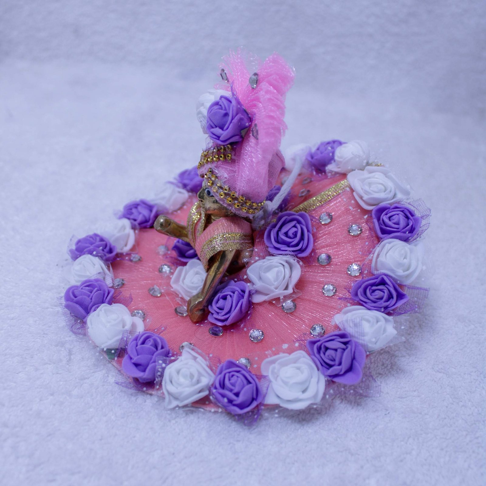 Handcrafted Laddu Gopal Idol with Peach Pink Designer Poshak (Lavender Floral Edition)