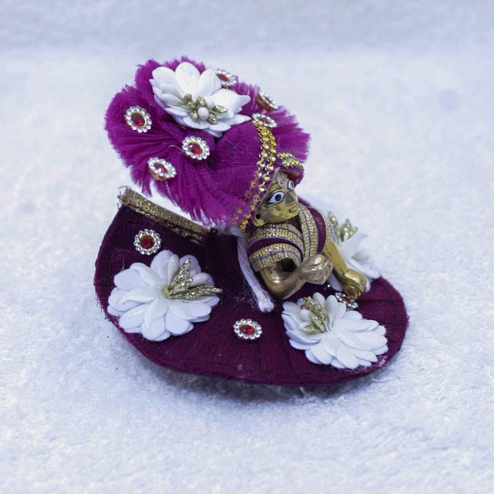 Handcrafted Laddu Gopal Idol with Designer Poshak (Purple Floral Edition)