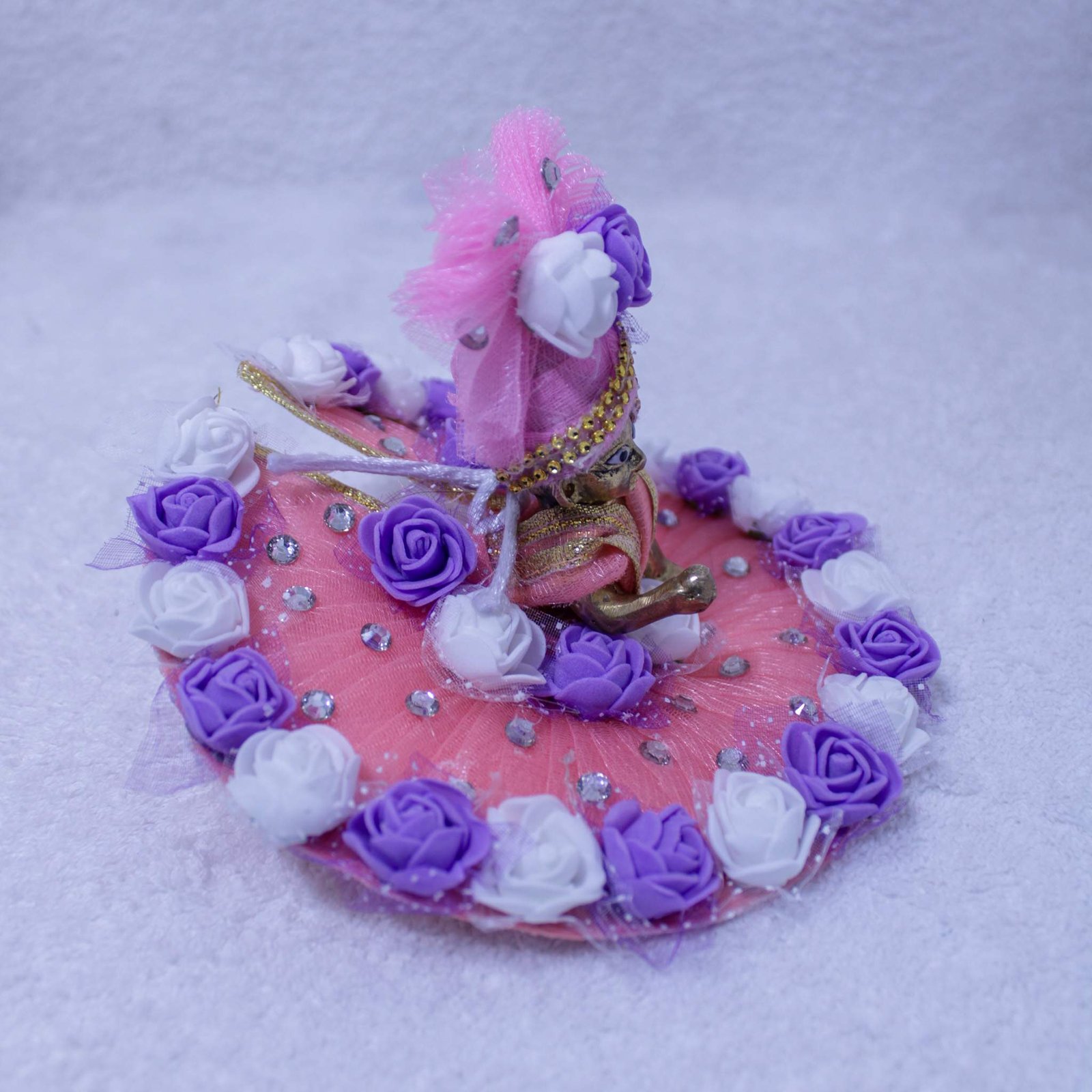 Handcrafted Laddu Gopal Idol with Peach Pink Designer Poshak (Lavender Floral Edition)
